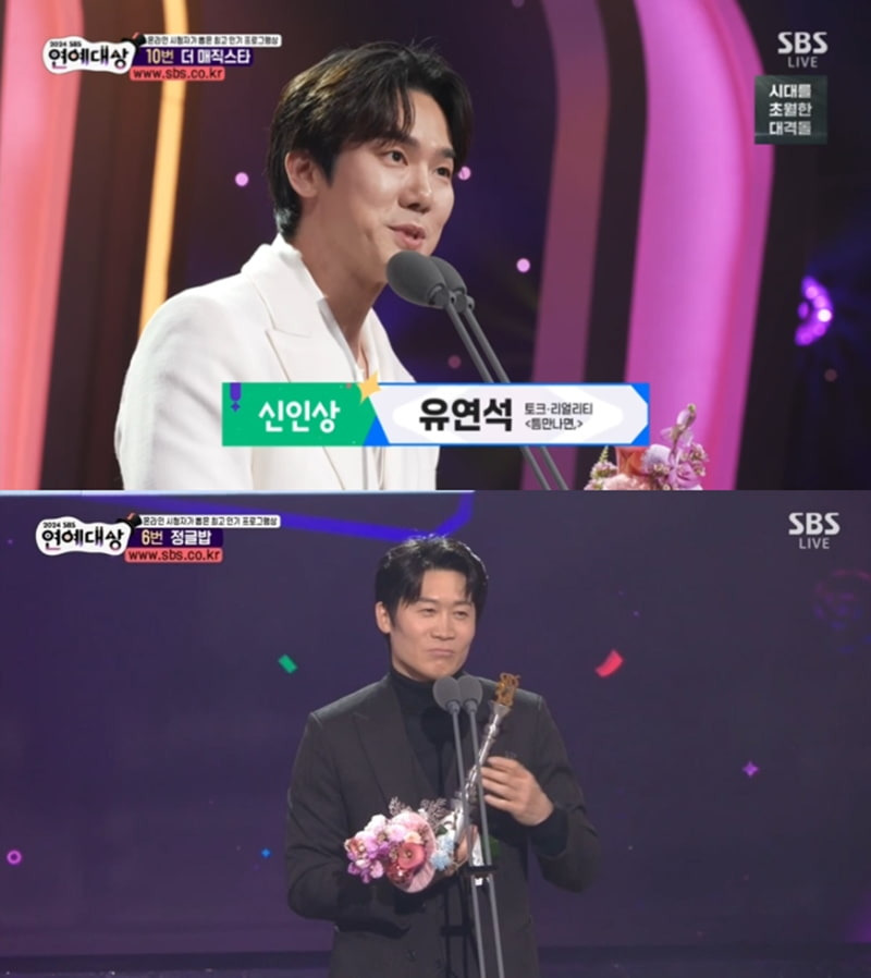 [2] 뉴스1 - 유연석, 신인상 수상…"키워준 재석 형님 감사" [SBS연예대상] (https://www.news1.kr/entertain/broadcast-tv/5674526)