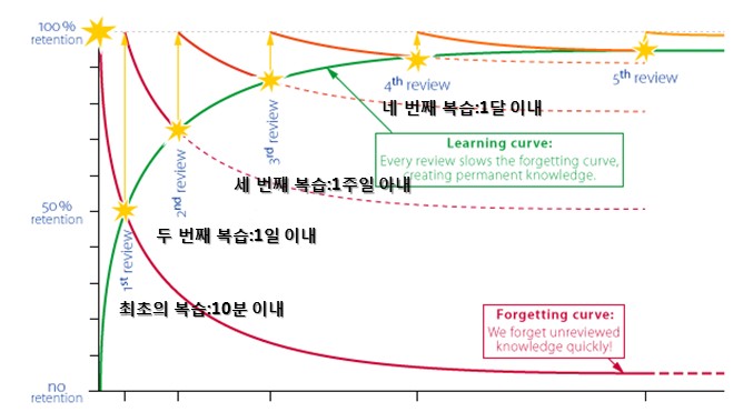 물론 에빙하우스의 망각 곡선을 따라가면서 말이다.