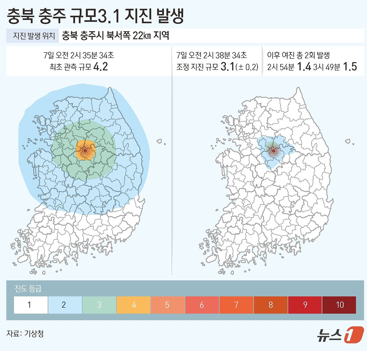 [4] 뉴스1 - 한밤 잠 깨운 충주 지진…'규모4.2' 전국 문자 뒤→'규모3.1' 조정 (https://www.news1.kr/society/environment/5682176)