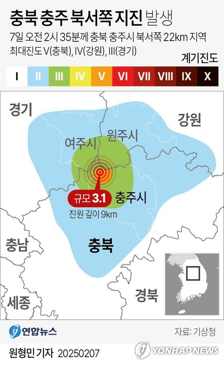[2] 연합뉴스 - 새벽 단잠 깨운 충주 지진…규모 4.2→3.1 수정, 왜 차이 컸나 (https://www.yna.co.kr/view/AKR20250207094200530)