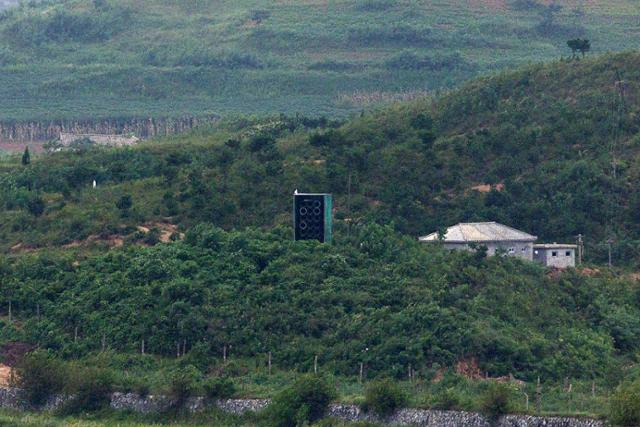 대남방송을 위한 스피커 시스템이 설치된 모습입니다. 이 소음이 주민들에게 미치는 영향은 심각합니다.