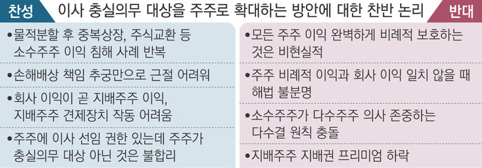 이사 충실의무 확대에 대한 찬반 논란이 뜨겁습니다. 찬성 측은 일반 주주에 대한 법적 보호 필요성과 주주 가치의 중요성을 강조하며, 해외 주요 국가에서의 이사 의무를 언급합니다. 반면, 반대 측은 경영 효율성 저하와 소수 주주 우선주의에 대한 우려를 제기합니다. 이러한 논란은 기업 경영의 방향성을 결정짓는 중요한 요소가 될 것입니다. (image 2, image 4)