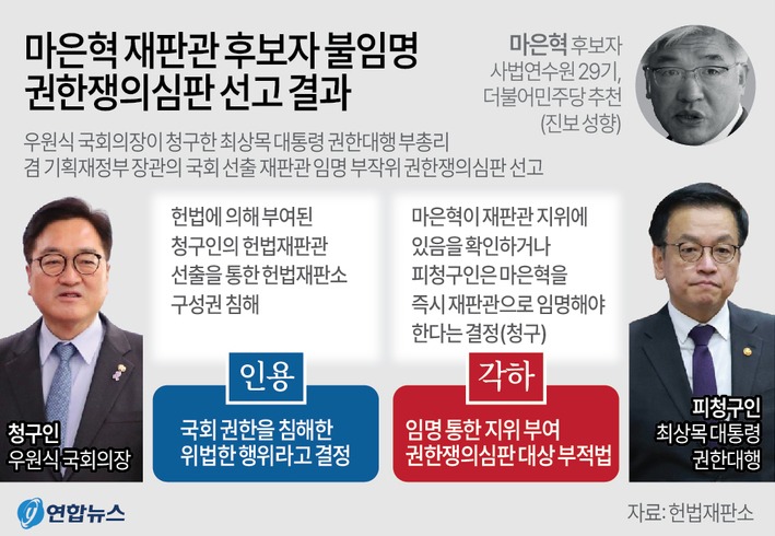 [4] YouTube · MBN News - 헌재 "마은혁 미임명은 위헌"…최상목의 선택은? | 이슈픽 zip (https://www.youtube.com/watch?v=cKL2WCyONb0)