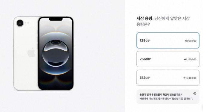 | 아이폰 16e | 6.1인치 | 12MP | 3,200mAh | ₩990,000 |