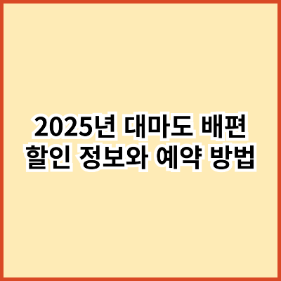 2025년에는 다양한 할인 혜택과 프로모션이 제공될 예정입니다. 특히, 조기 예약 시 할인 혜택이 많으니 미리 예약하는 것이 좋습니다. 각 배편 운영사에서 제공하는 할인 정보를 잘 확인해 보세요.