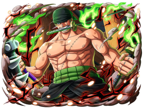 만화 원피스의 등장인물. 밀짚모자 일당의 전투원. 몽키 D. 루피의 첫 번째 동료. 세계 최강의 검사 '매의 눈' 쥬라큘 미호크를 뛰어넘어 세계 제일의 대검호가 되는 것이 목표인 삼도류(三刀流)의 검사다.[54] 밀짚모자 일당에 들어오기 이전부터 이미 이스트 블루에서 '해적 사냥꾼'으로 악명을 떨치고 있었고, 대외적으로는 밀짚모자 일당의 2인자로 여겨지고 있으며 일당의 선원들 중에서는 선장 루피와 함께 최악의 세대에 이름을 올린 유일한 인물이다. 실질적으로는 밀짚모자 일당의 부선장이나 다름 없으며 일당의 기강이 흔들린다고 생각하면 칼을 빼들고 기합을 넣는 군기반장이기도 하다. 이름의 유래는 프랑수아 롤로네.[55][56]