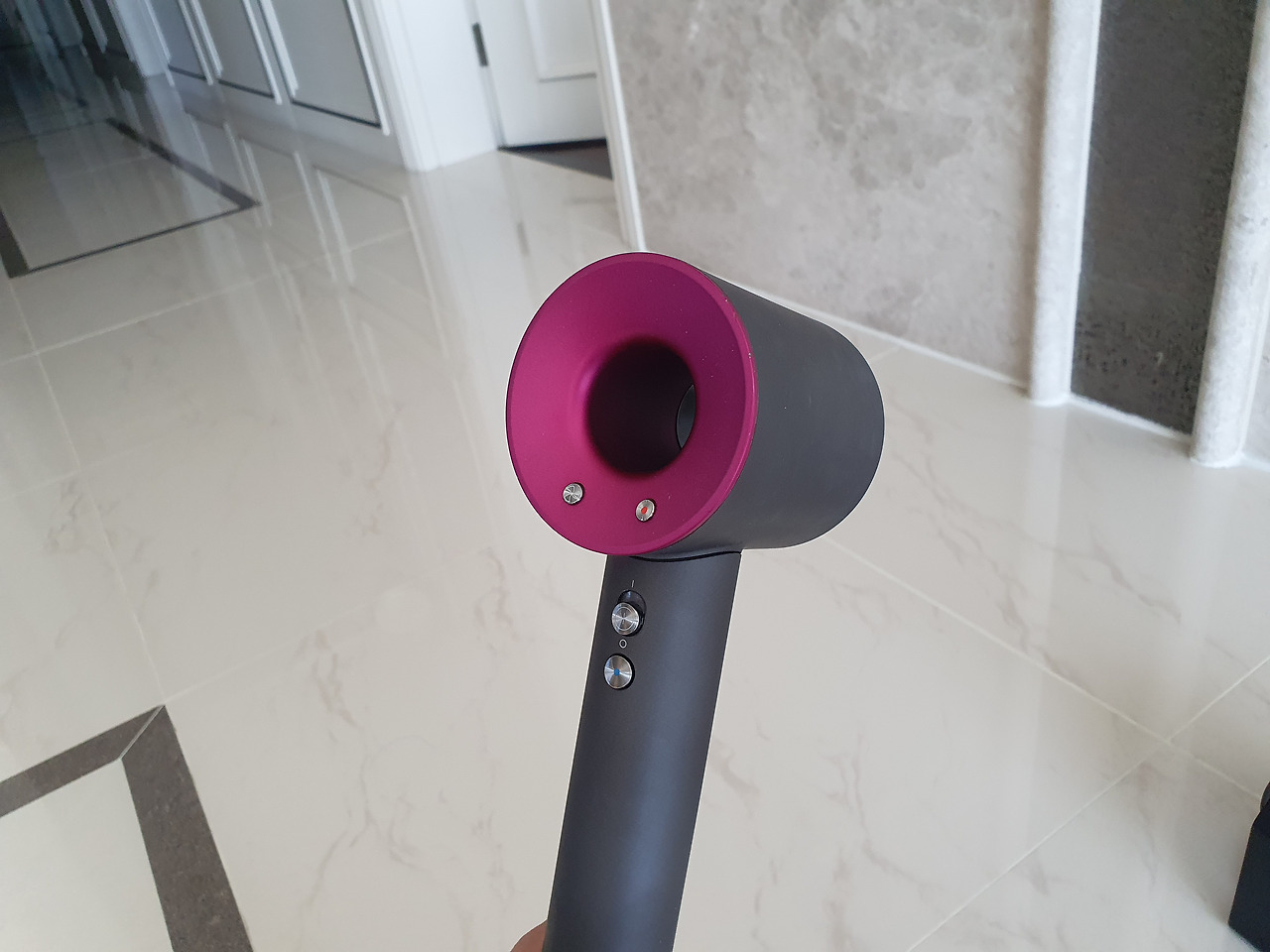 다이슨 헤어드라이어는 세련된 디자인으로 유명합니다.