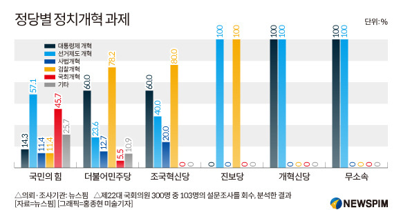 정치 개혁은 여야 모두에게 중요한 이슈입니다. 여당은 대통령 권한 분산과 선거 제도 개혁을 주장하고 있으며, 야당은 이러한 개혁이 정치적 불안정을 초래할 수 있다고 반발하고 있습니다. 이로 인해 정치적 대립이 심화되고 있으며, 각 당의 지지층 간의 갈등도 커지고 있습니다.