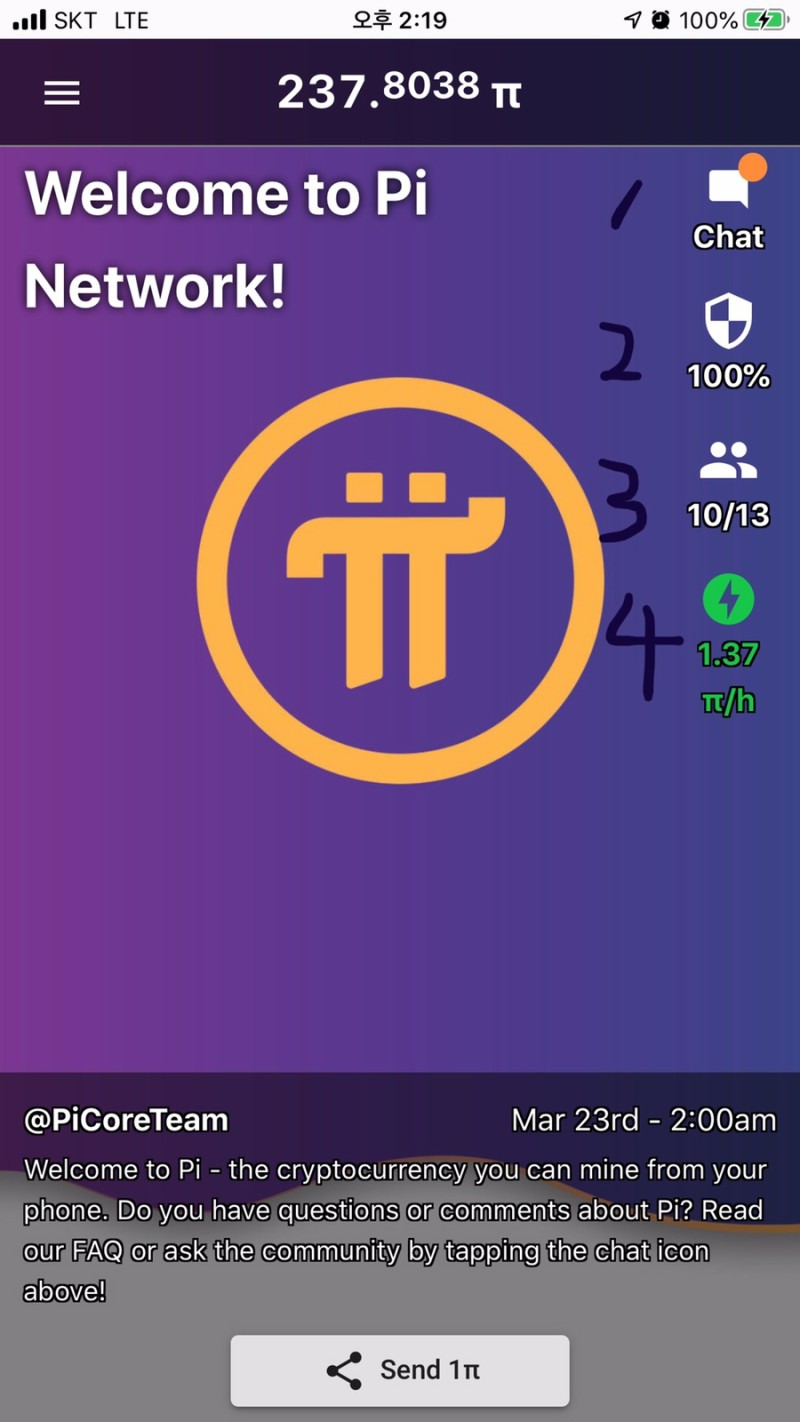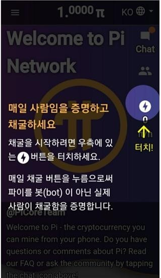가입이 완료되면 파이코인 메인화면으로 이동합니다.