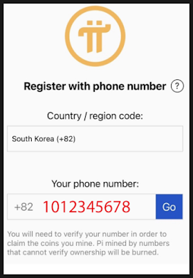 휴대폰번호 가입 선택 -> South Korea(+82) 선택 -> 1012345678 본인의 휴대폰 번호에서 맨앞의 0을 제외하고 입력하시면 됩니다 (본인의 휴대폰 번호가 010-1234-5678 이라면 1012345678 과 같이 '010' 대신 '0'을 제외한 '10'을 입력합니다)