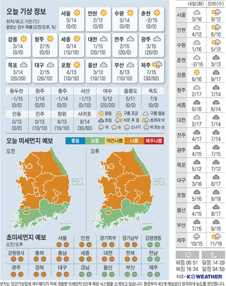 [1] 조선일보 - [오늘의 날씨] 2025년 3월 15일 (https://www.chosun.com/national/national_general/2025/03/15/YMEWW4FO7RGRTKJBLTUMHQQ6W4/)