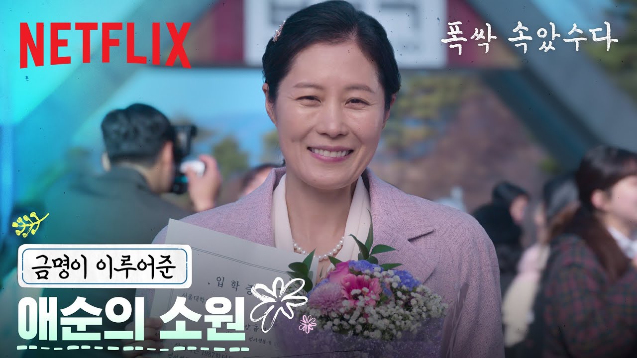 [1] YouTube · Netflix Korea 넷플릭스 코리아 - 축⭐️양금명 서울대 입학⭐️, 마냥 좋은 애순과 속이 쓰린 관식 ... (https://www.youtube.com/watch?v=8f54ZGR6pBs)