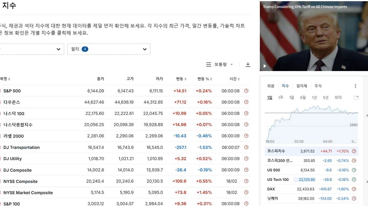 최근 뉴욕 증시 동향