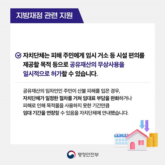 각 지역 정부에서는 피해 주민들을 위해 다양한 지원을 제공하고 있습니다. 예를 들어, 임시 주거시설 제공, 생활 필수품 지원 등이 있습니다. 이러한 지원은 지역 주민들이 빠르게 일상으로 복귀할 수 있도록 돕기 위해 마련되었습니다.