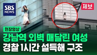 강남역 외벽에 매달린 여성, 긴급 구조의 전말