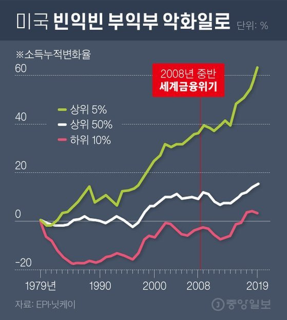 소득 불평등은 한국 경제의 큰 문제 중 하나입니다. 상위 5%의 소득은 급격히 증가하고 있는 반면, 하위 10%의 소득은 정체 상태에 있습니다.