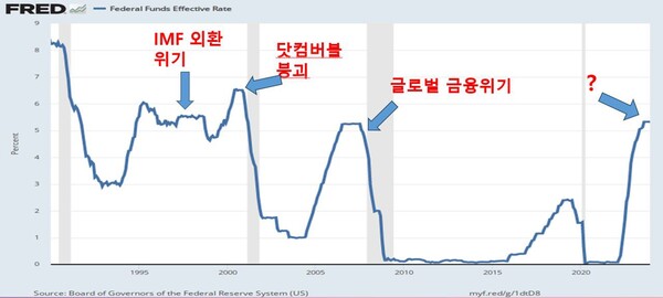 한국 경제는 글로벌 경제와 밀접하게 연결되어 있습니다. 미국의 금리 인상과 같은 국제적인 경제 변화는 한국 경제에 직접적인 영향을 미칩니다. 아래 그래프를 보면, 미국의 금리가 상승할 때 한국 경제가 어떻게 반응했는지를 알 수 있습니다.