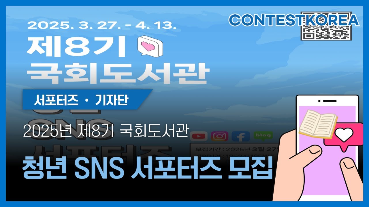 [3] 올콘 - 2025년 제8기 국회도서관 청년 SNS 서포터즈 모집 (https://www.all-con.co.kr/hit/contest/m/2849)