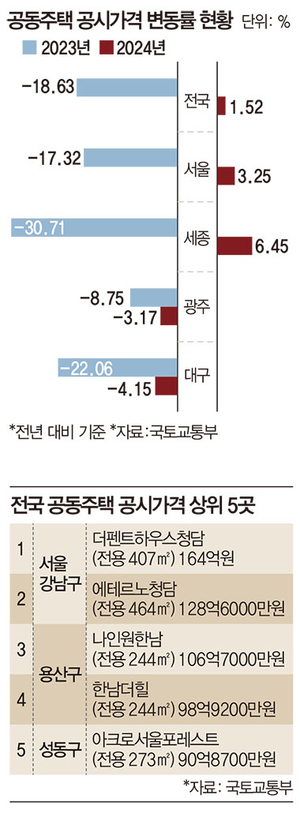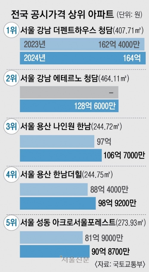 [2] 매일경제 - 2024년 전국 아파트 공시가 소폭 상승, '청담동 PH129' ... (https://www.mk.co.kr/news/economy/11001118)