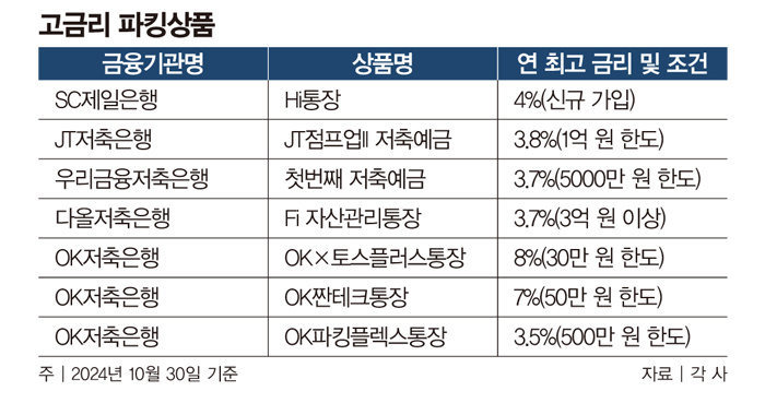 [1] Chosunbiz - 하루만 맡겨도 年 이자 4%… 예금금리 하락에 파킹통장 북적 (https://biz.chosun.com/stock/finance/2024/08/10/6ENHMHOHEZBBVD4OGP7NXWFOGM/)