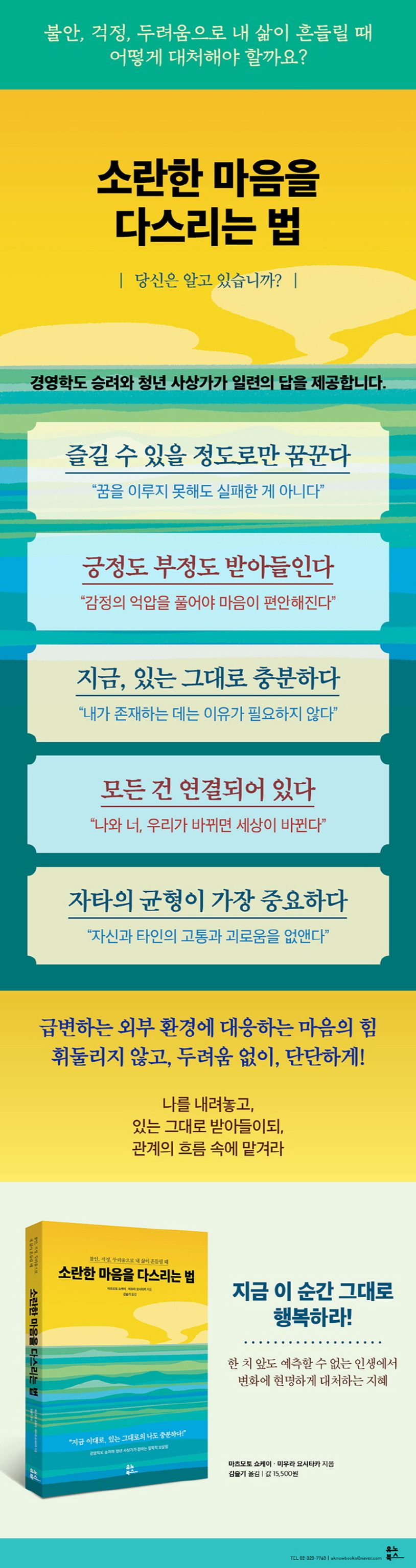 마음을 다스리는 데 도움이 되는 도서들도 많이 있습니다. 예를 들어, "소란한 마음을 다스리는 법"이라는 책은 마음의 소란을 다스리는 다양한 방법을 제시합니다. 이 책을 통해 마음의 평화를 찾는 데 필요한 지혜를 얻을 수 있습니다.