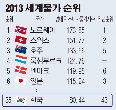 비교: 한국과 물가 비싼 나라