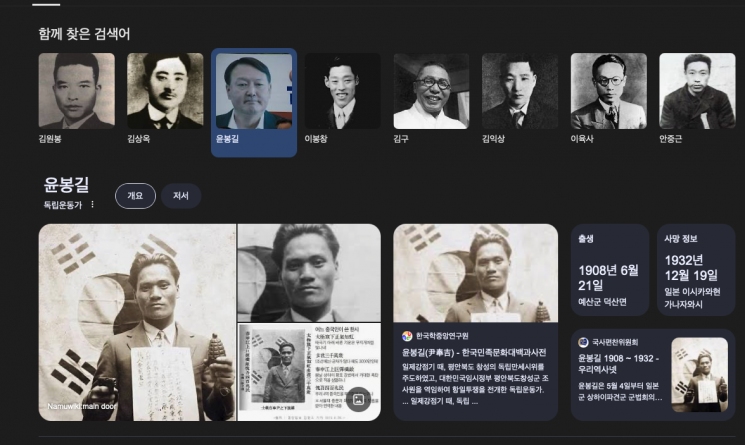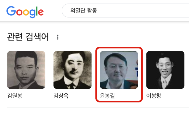 [2] 아시아경제 - '윤봉길' 이름에 윤 대통령 얼굴이 왜…구글 의열단 검색오류 (https://www.asiae.co.kr/article/2024112708075464922)