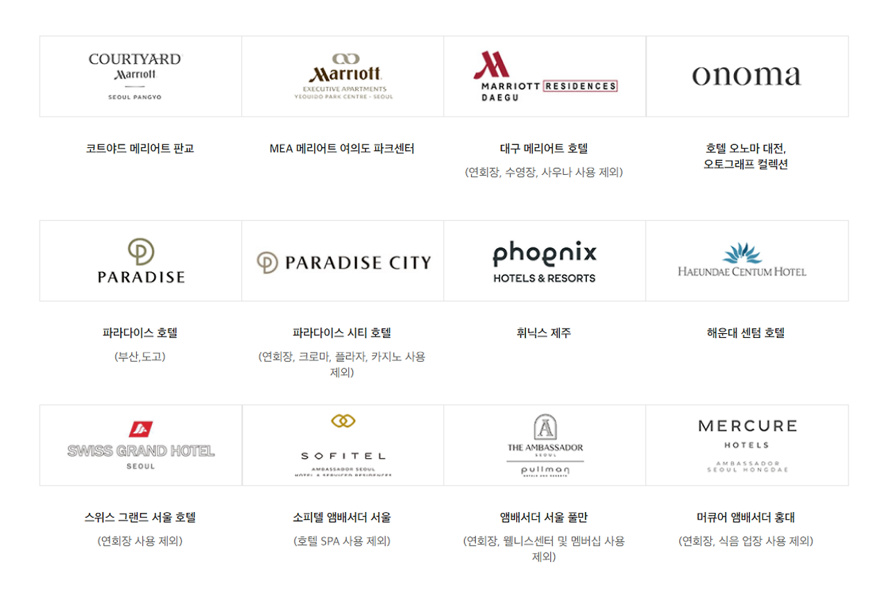 신세계상품권은 여러 호텔에서도 사용할 수 있습니다. JW 메리어트, 파라다이스 호텔 등 다양한 숙박업체에서 이용 가능하니, 여행 계획 시 참고하시기 바랍니다.