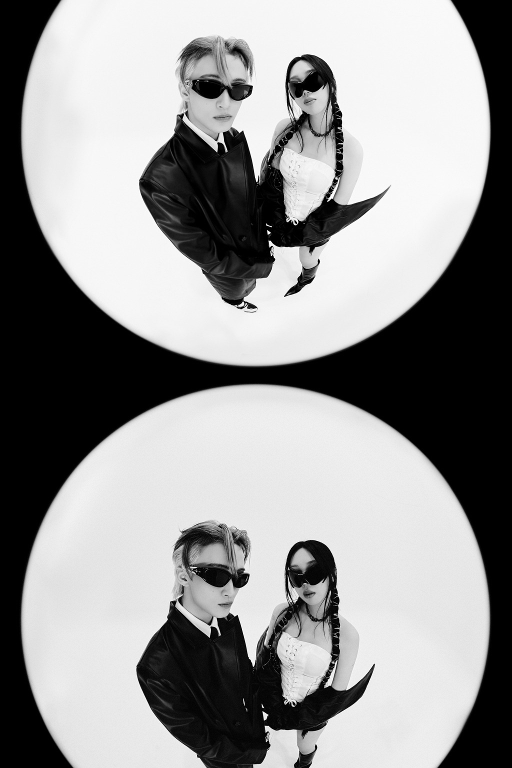 두 사람의 대조적인 스타일이 시각적으로 매력적입니다.