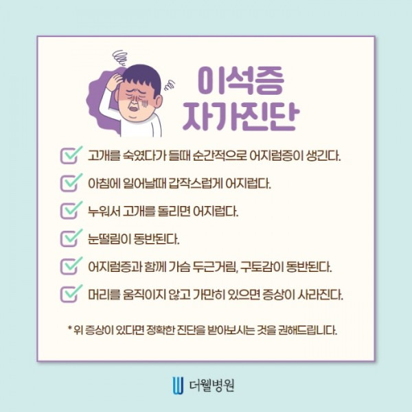 이러한 증상이 있다면, 이석증을 의심해볼 수 있습니다.