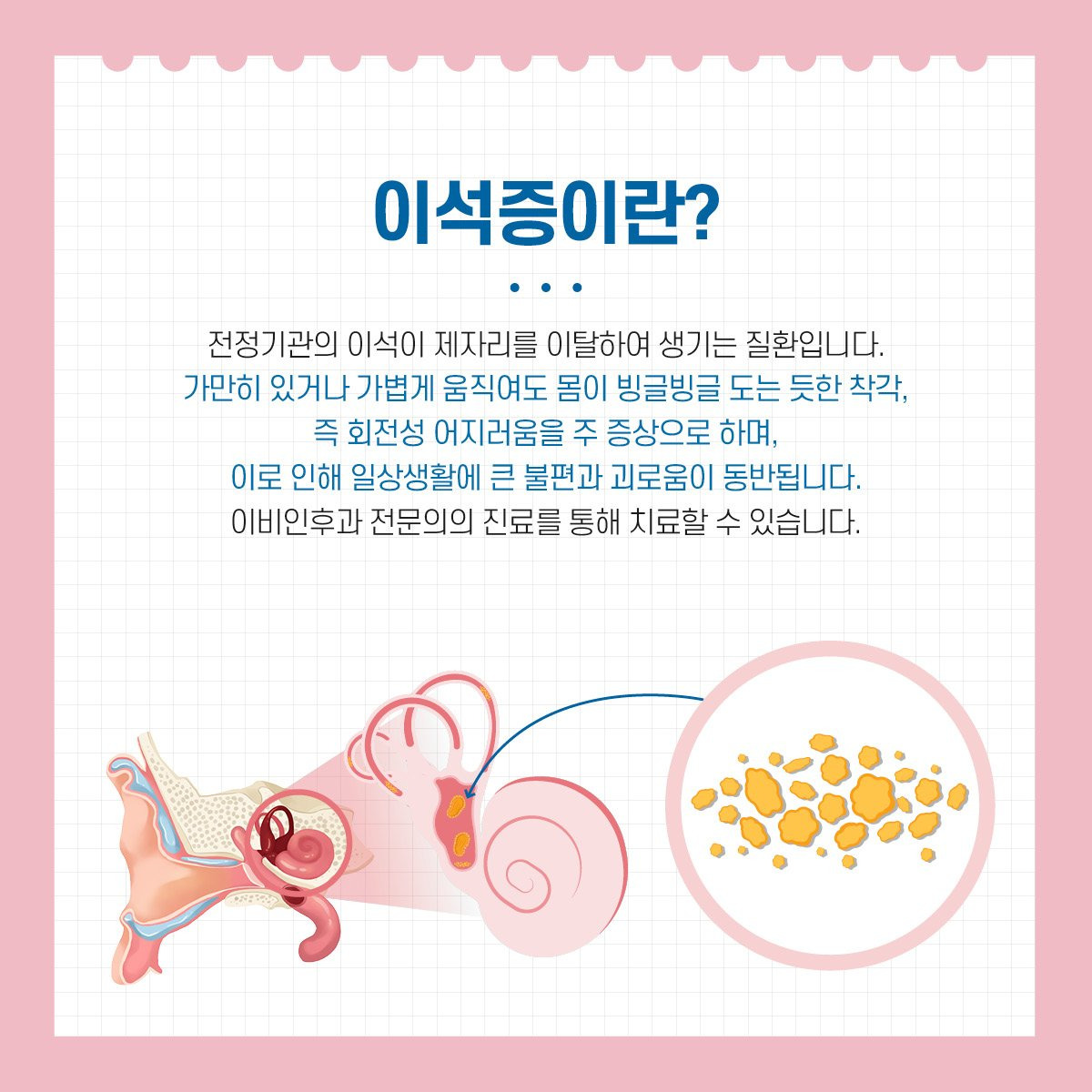 이석증은 치료가 가능한 질환이므로, 증상이 나타날 경우 빠르게 전문가의 진료를 받는 것이 중요합니다.