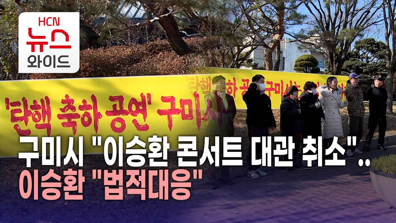 [2] 연합뉴스TV - 구미시 '탄핵지지' 이승환 콘서트 대관 취소…이 "법적 대응" (https://m.yonhapnewstv.co.kr/news/MYH20241223022900641)