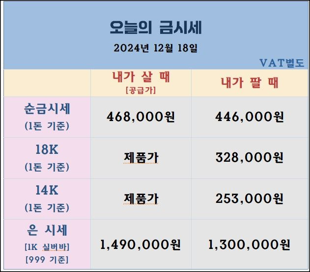 [3] 삼성금거래소 - 2024년 12월 23일 국내 가격 동향 (https://samsunggold.co.kr/bbs/board.php?bo_table=news&wr_id=2422)