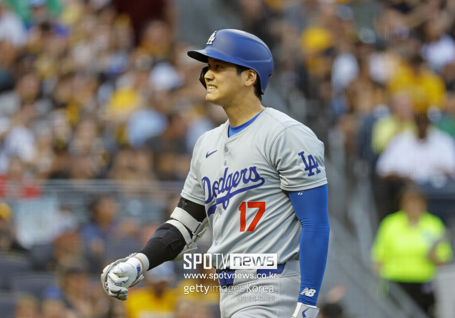 오타니의 집중하는 모습이 인상적인 이미지입니다.