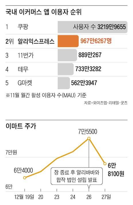 [3] 연합투데이 - 이마트, 중국 알리바바 손잡자 10% '뚝' 어떤 '시너지' 낼까... (https://www.yhtoday.co.kr/news/articleView.html?idxno=35058)