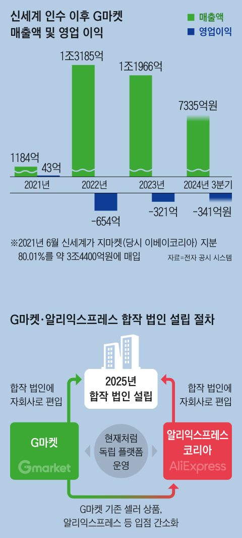이 그래프는 G마켓의 매출과 운영 이익 변화를 보여주며, 향후 이마트와 알리바바의 합작이 경쟁사에 미칠 영향을 분석하는 데 도움이 됩니다.