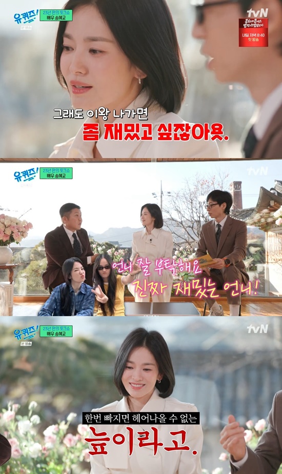 [1] 매일경제 - '늪 같은' 송혜교, 32년 만에 예능에 긴장 “엄청 떨려” (유퀴즈) ... (https://www.mk.co.kr/news/entertain/11213267)