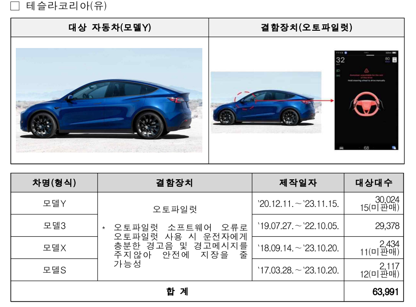 테슬라 전기차 리콜 개요