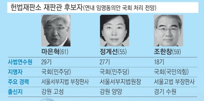 [3] 한겨레 - 윤 대통령 쪽, “우리법연구회 회원”이라며 정계선 재판관 기피 ... (https://www.hani.co.kr/arti/society/society_general/1177695.html)