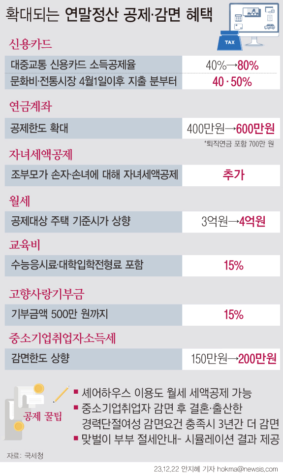 2024년에는 여러 가지 공제 항목이 새롭게 추가되거나 변경되었습니다. 특히, 신용카드 사용에 대한 공제 비율이 증가하고, 자녀 세액공제의 한도가 확대되었습니다.