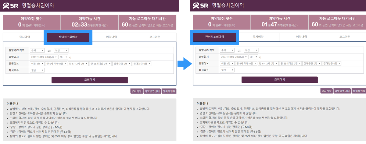 - 회원가입 필수 : 온라인 예매는 SR 회원만 가능합니다. 미등록 고객은 사전 회원가입이 필요합니다.