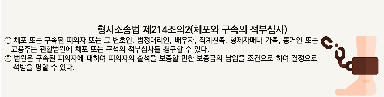 [4] daeryunlaw-detective.com - 구속적부심사 뜻과 청구 방법, 절차 | 대륜 - 형사전문변호사 (https://www.daeryunlaw-detective.com/lawInfo_new/3413)
