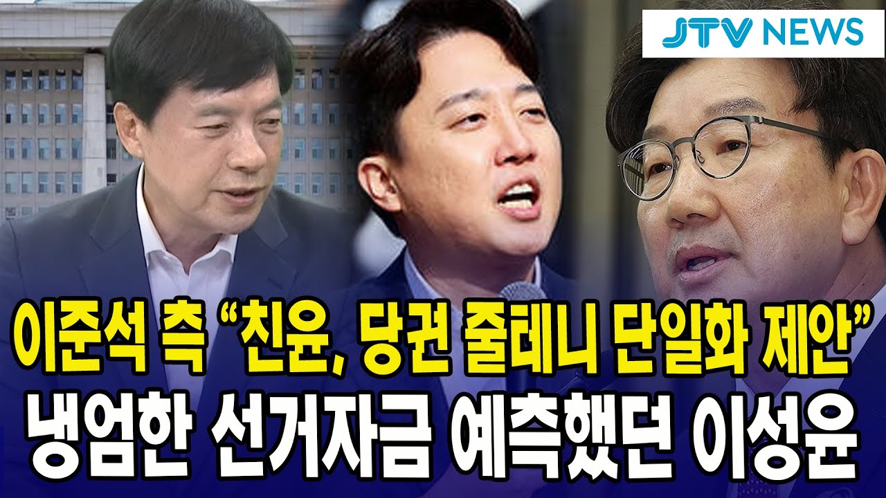 [3] YouTube · Channel A News (Korea) - 이준석 측 “친윤, 당권 주겠다며 단일화 제안”…파장 일파만파 ... (https://www.youtube.com/watch?v=LaDKCihRD68)
