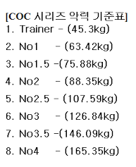 이 표를 보면 coc악력기가 얼마나 빡샌지 느낄 수 있다. 일단 No.4를 잡은 사람은 세계에 단 6명밖에 없다. 물론 고인도 존재하겠지만 상세한 기록은 찾을 수 없었다. 무튼 내가 저걸 잡는다면 1.5단계도 버겁다는 말이다.