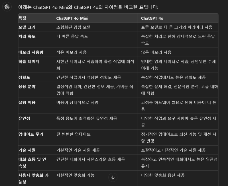 반면, 4o 미니는 특정 작업에서 빠른 속도를 자랑합니다.